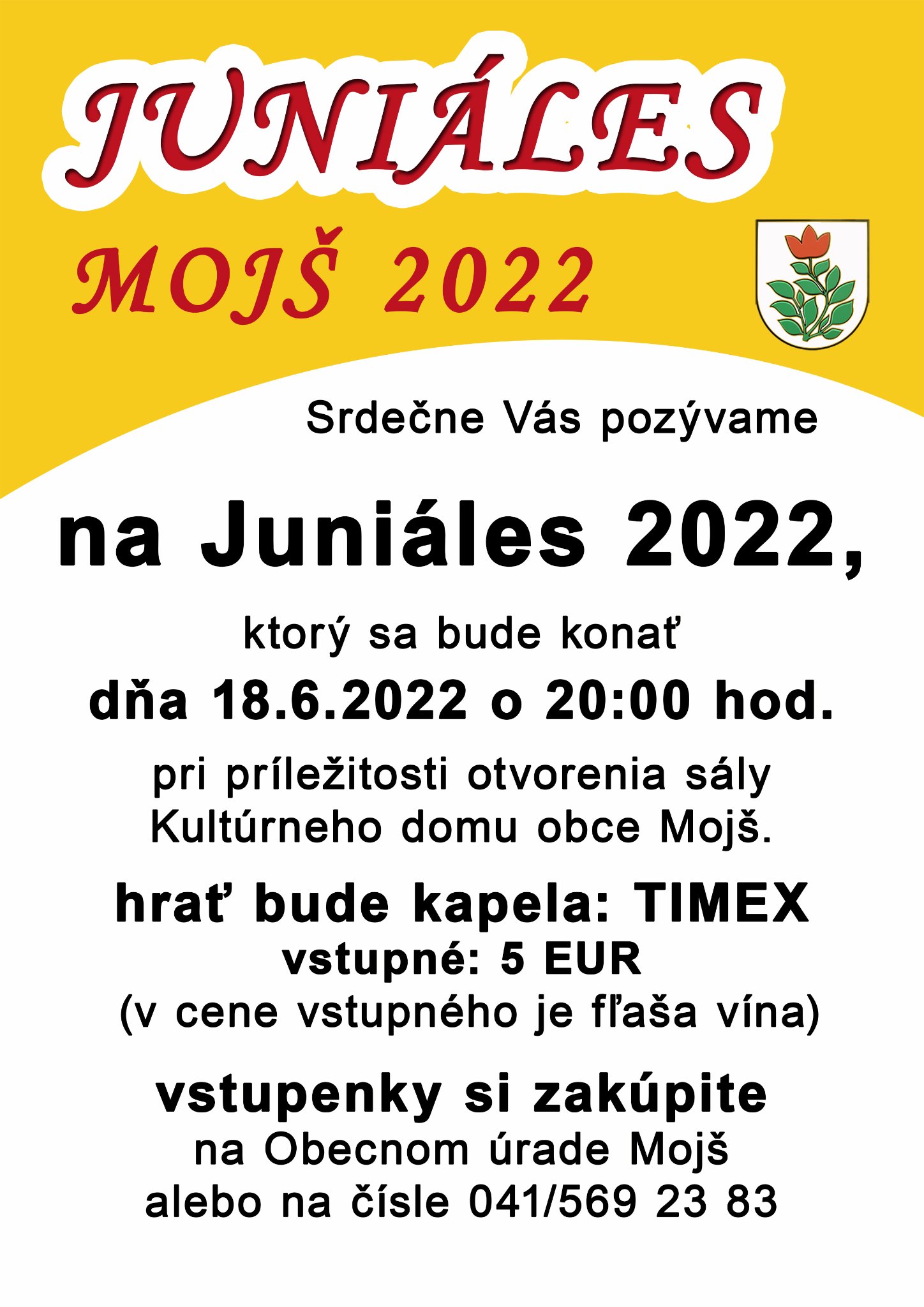 Obec Mojš pri príležitosti otvorenia miestnej kultúrnej sály usporiada 18. 6. 2022 Juniáles, ktorého súčasťou bude bohatý sprievodný program a bohatá tombola, do ktorej vecnými cenami prispeli aj bojovníci.